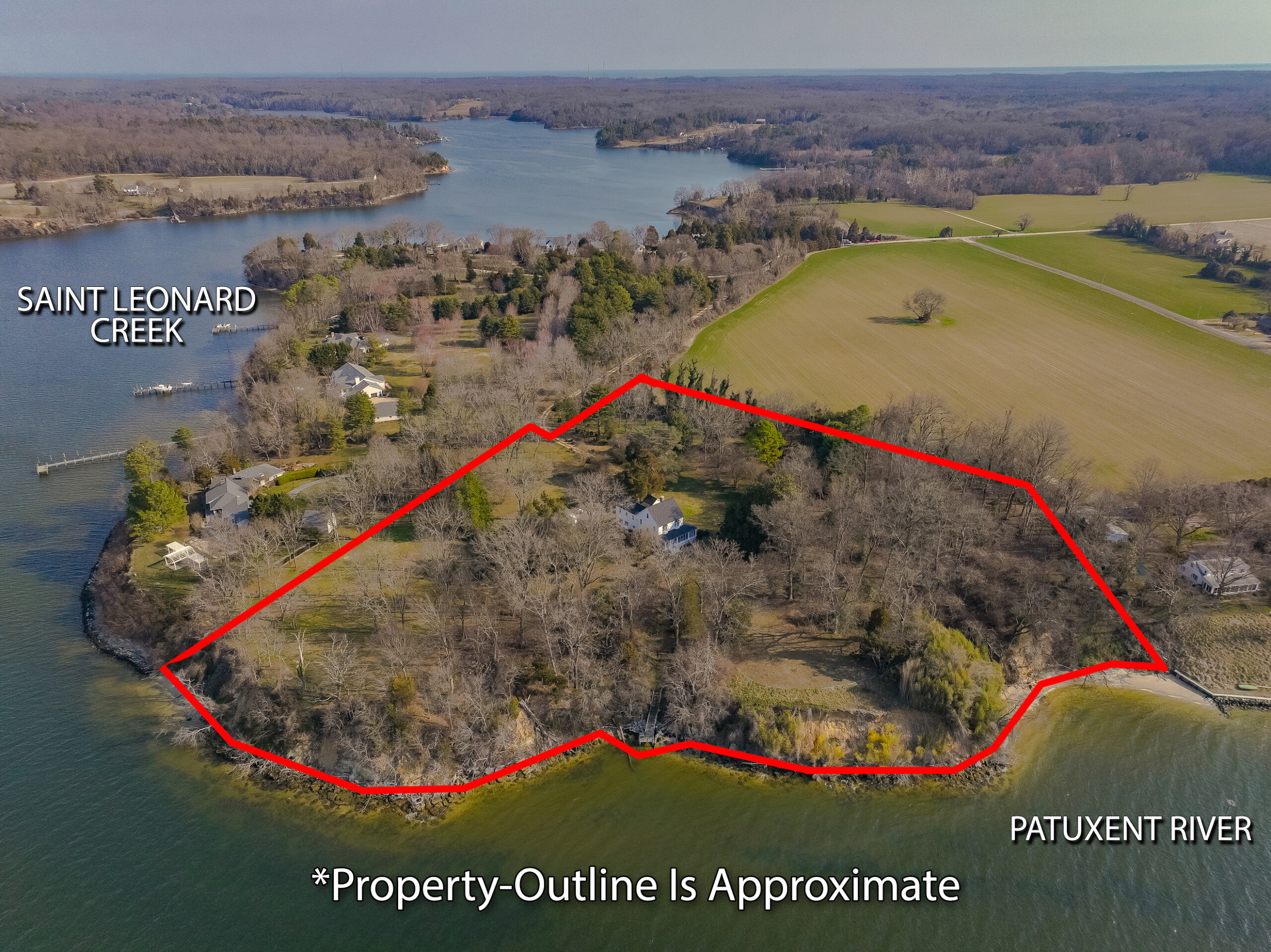 Situated where the Patuxent River meets St. Leonard Creek, this serene 8.21-acre waterfront retreat offers exceptional privacy, sweeping views, and a timeless home rich in character and history. Built in 1907 and lovingly maintained by the same family since 1935, this four-bedroom, three-bath residence blends timeless character with comfortable living.