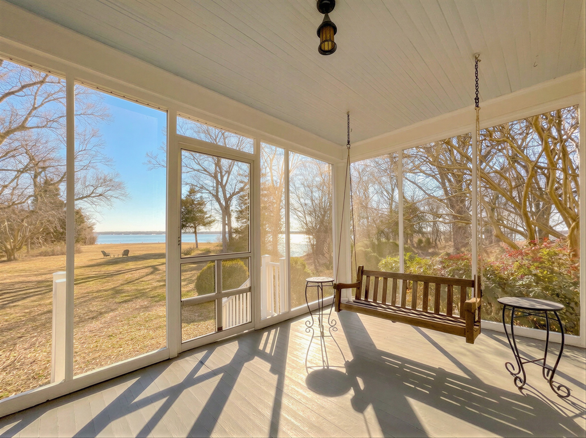 The riverfront wrap around screened porch creates an inviting setting for dining, entertaining, or simply unwinding while enjoying cool breezes and breathtaking sunsets. Panoramic views from the river bank stretch from the Governor Thomas Johnson Bridge to Broomes Island, offering an ever-changing waterfront backdrop.