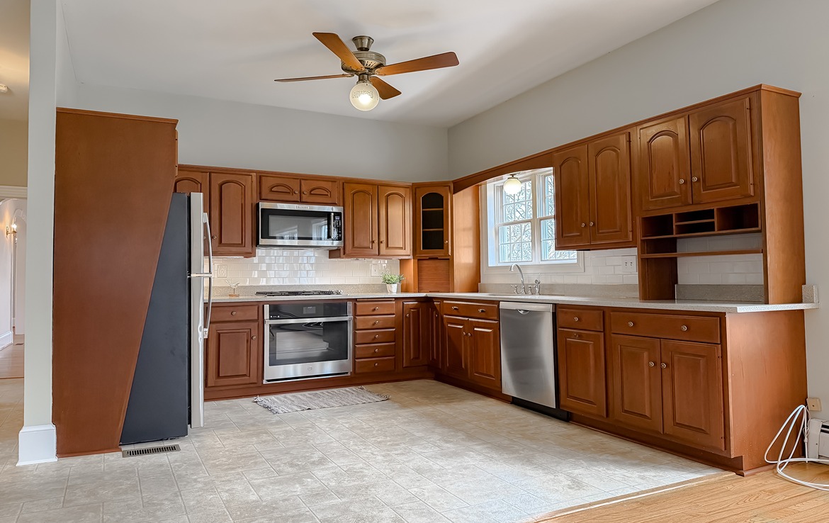 Additional features include a detached three-car garage, a gardening shed, and the freedom of no HOA or restrictive covenants. Modern updates enhance efficiency and peace of mind, including a four-zone geothermal heating and cooling system, a new roof installed in 2023 with CertainTeed architectural shingles (limited lifetime transferable warranty), fresh paint and recently refinished hardwood floors by Wells Flooring.
