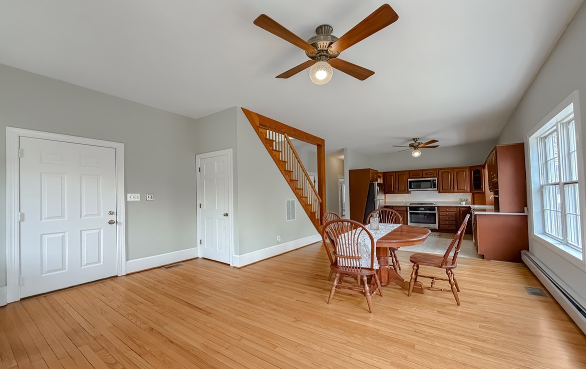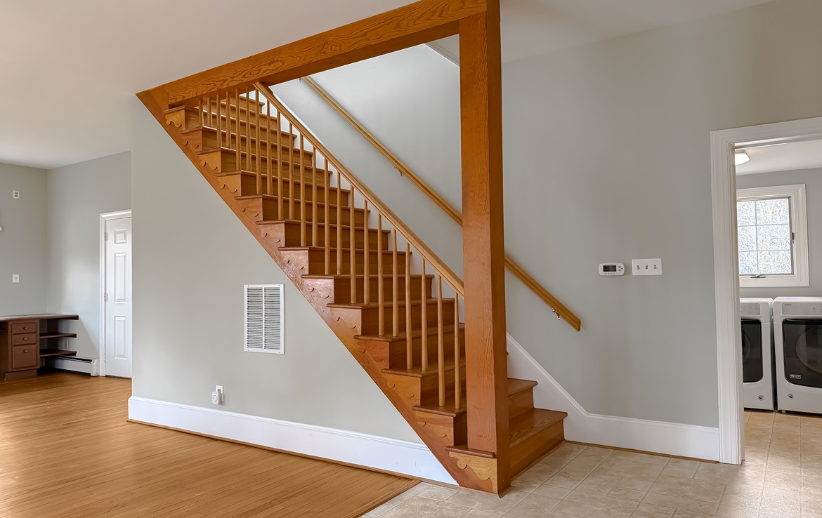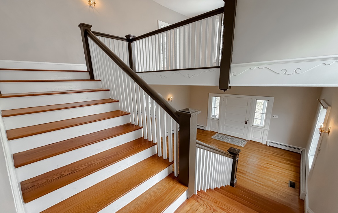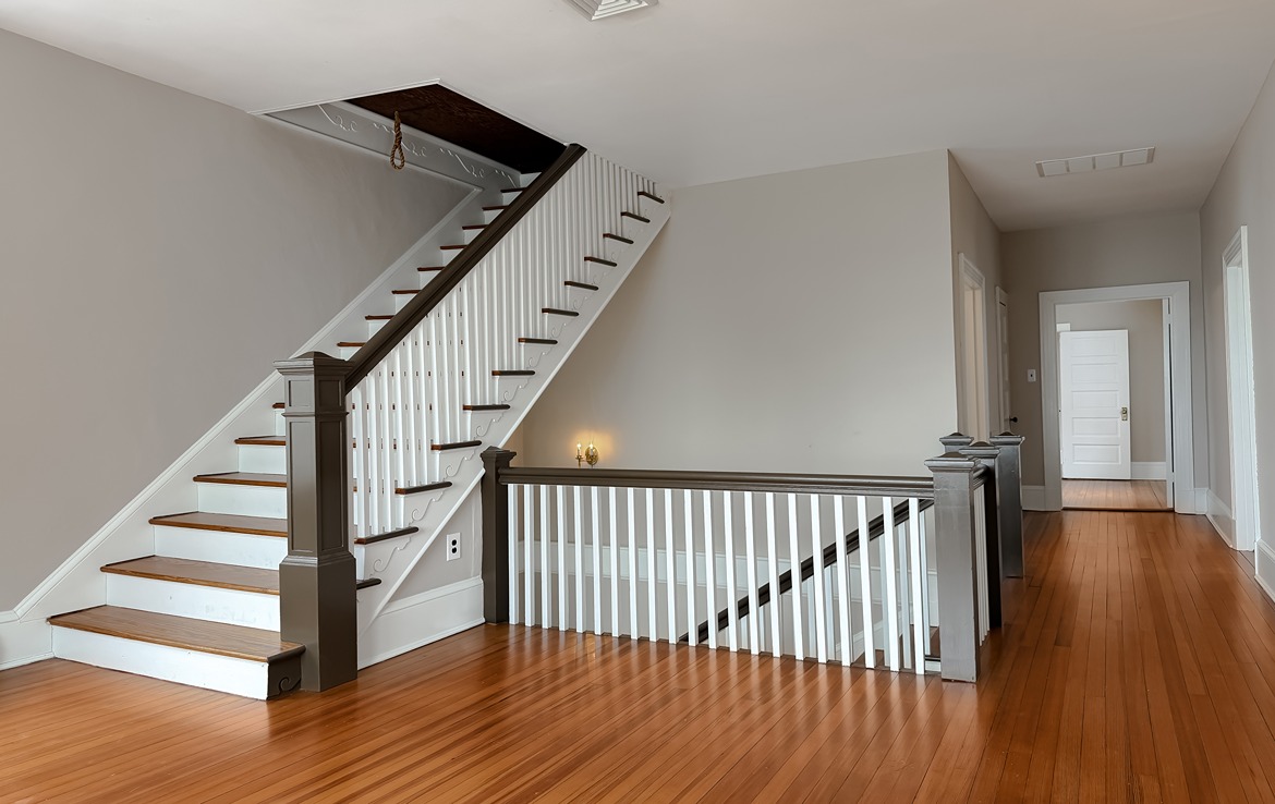 Upstairs, a striking staircase leads to four bedrooms and two full baths. The Primary Bedroom offers beautiful river frontage views. A large open area with commanding views of the Patuxent River offers the perfect space for relaxation, or the opportunity to expand the existing Primary Bedroom, creating a luxurious suite. A wide staircase provides easy access to the attic for additional storage. Three additional bedrooms and a second staircase complete the upper level.